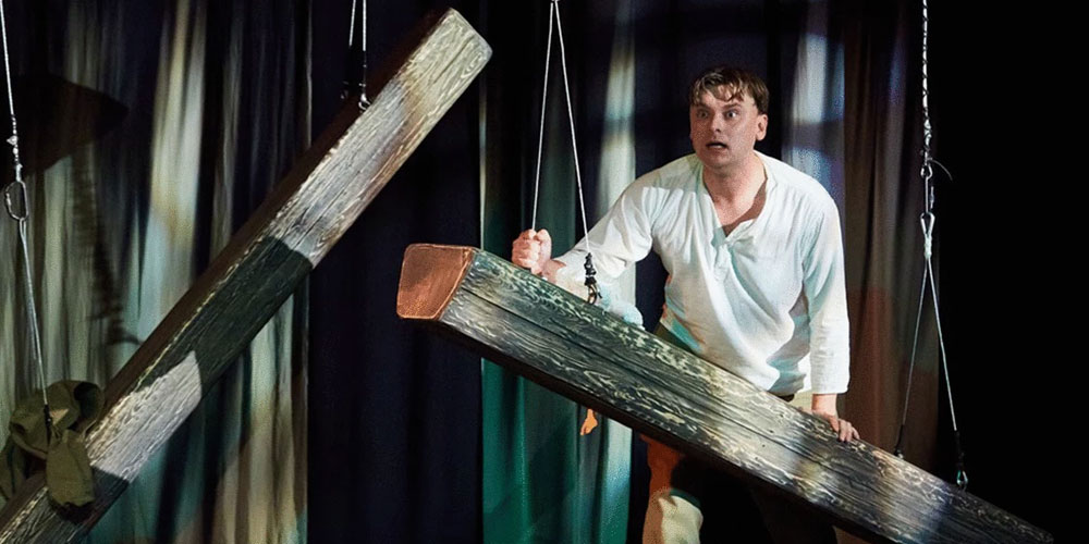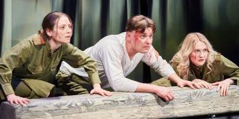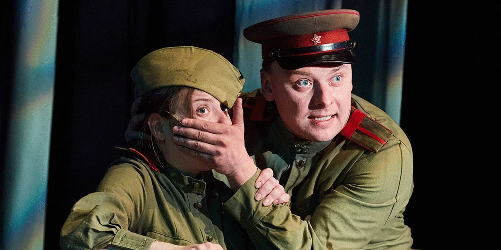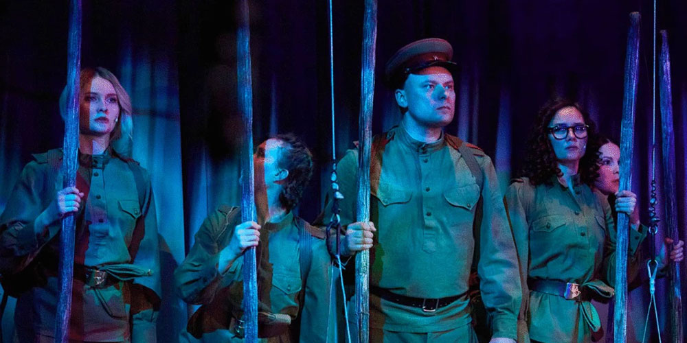 «А зори здесь тихие» — это спектакль-баллада, где кошмарный сон перетекает в не менее жестокую реальность, а в светлые воспоминания о девичьем прошлом врывается военная действительность.
